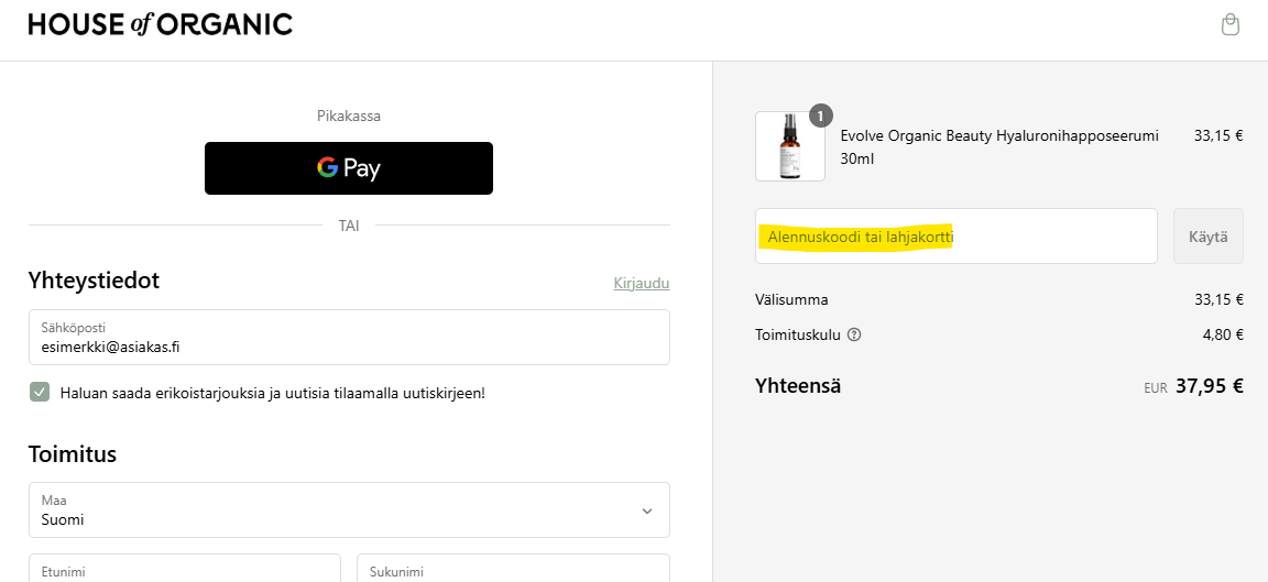 Miksi alennuskoodi ei toimi?Päivitetty 10 months ago